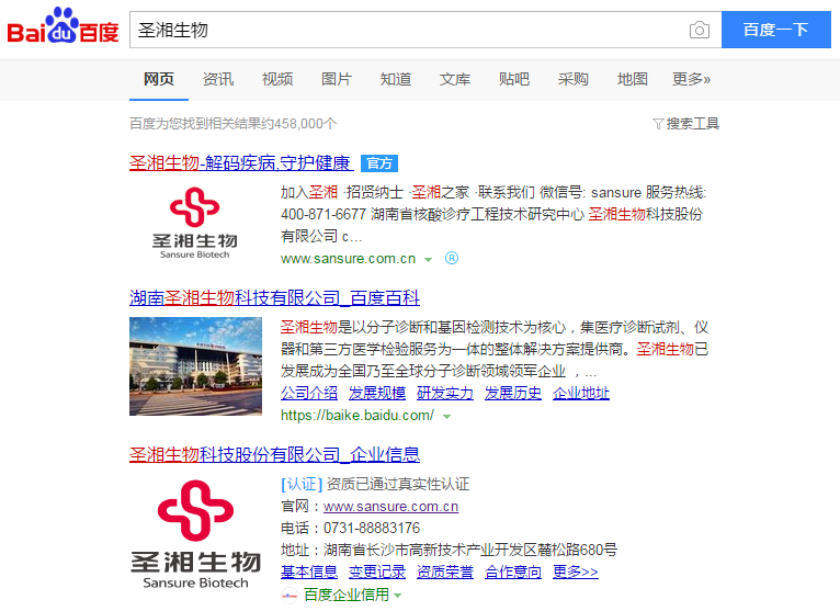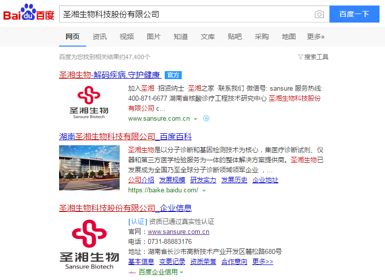 湖南百度企業(yè)名片案例搜索圣湘生物科技股份有限公司 圣湘生物科技股份有限公司 百度一下